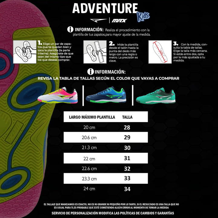 Su suela de caucho al 100%, equipada con la tecnología GUM-X proporciona una tracción superior y un rendimiento óptimo en asfalto. Disponible en tallas desde la 28 hasta la 34, la ADVENTURE es perfecta para niños que buscan comodidad y rendimiento mientras se desarrollan como deportistas.