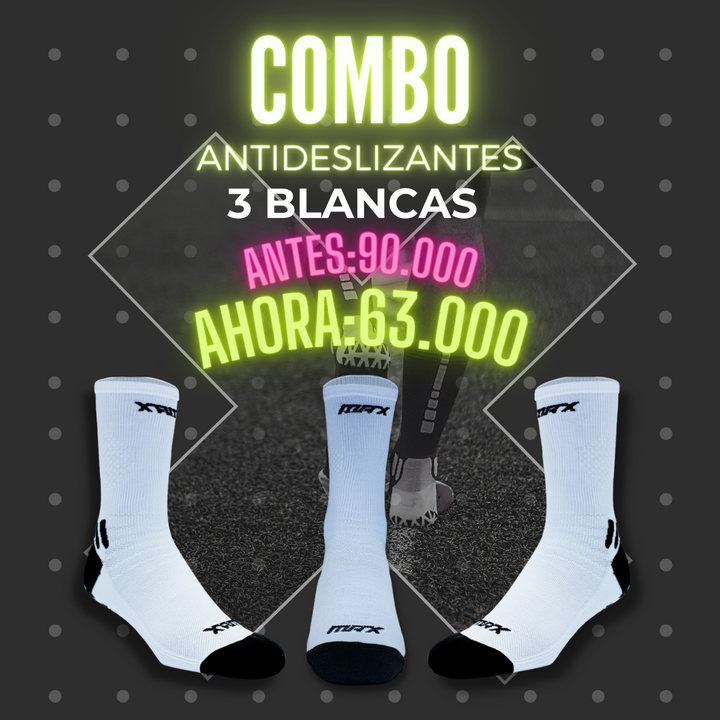 Lleva tu juego a otro nivel con nuestro kit de 3 Medias Antideslizantes a un precio especial, siempre tendrás a mano un par de medias frescas y limpias. Gracias a su diseño especial, las medias se ajustan perfectamente a tu pie, evitando rozaduras y ampollas para que juegues todos los partidos que quieras sin sentir dolor en los pies.