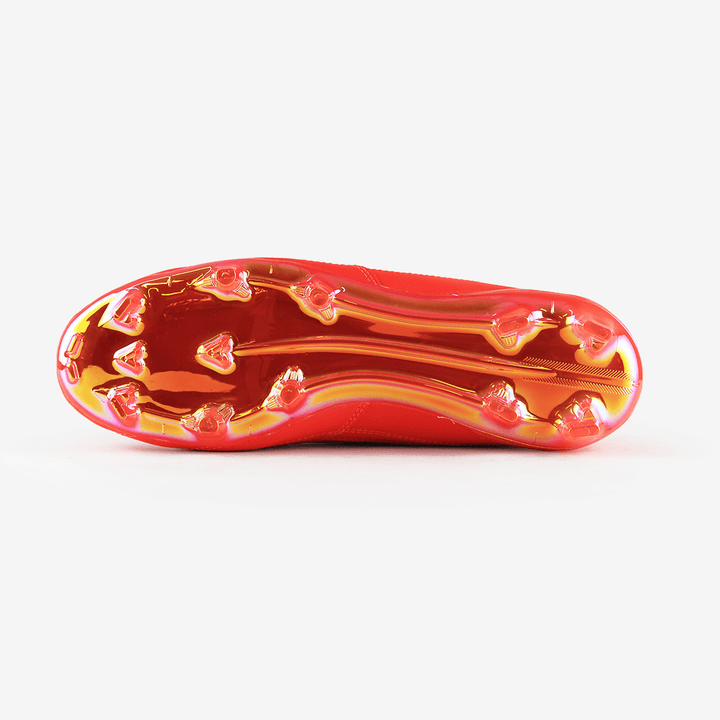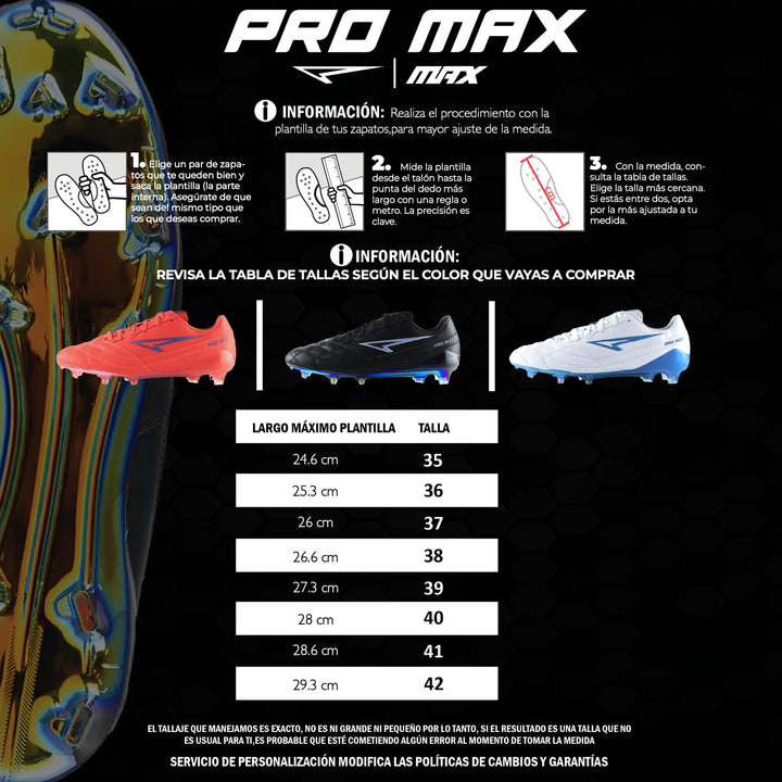 El diseño de la PRO MAX también incluye tecnología para mantener el pie en su lugar, mejorando el control y la estabilidad. La construcción ligera y el diseño moderno garantizan que puedas moverte con agilidad y estilo en el campo.