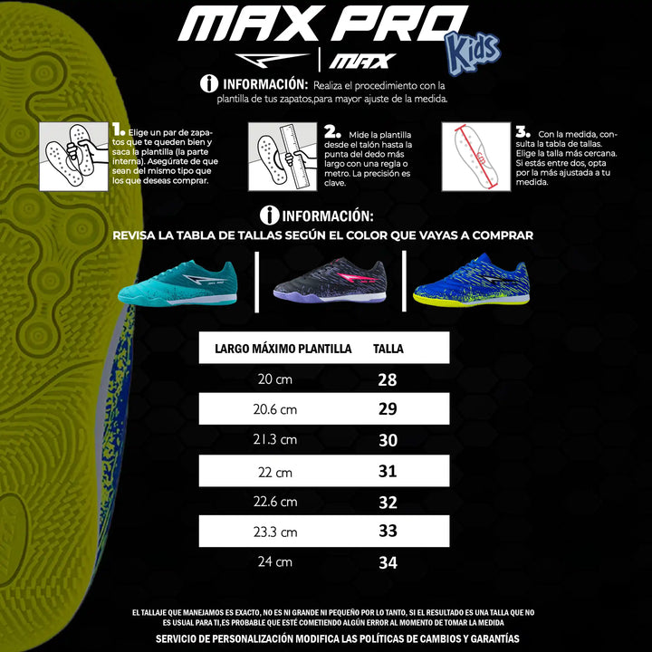 Su suela de caucho al 100%, equipada con la tecnología GUM-X proporciona una tracción superior y un rendimiento óptimo en asfalto. Disponible en tallas desde la 28 hasta la 34, la MAX PRO es perfecta para niños que buscan comodidad y rendimiento mientras se desarrollan como deportistas.