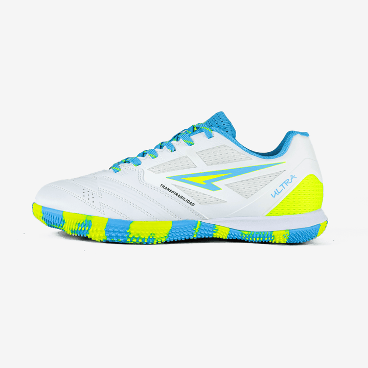 Las zapatillas ULTRA combinan lo mejor del rendimiento con la última tecnología en comodidad. Con una suela diseñada para ofrecer una tracción óptima en superficies duras como asfalto y concreto, gracias a su patrón multidireccional de goma. Este diseño asegura un agarre excepcional y facilita movimientos rápidos y cambios de dirección, ideal para futsal y microfútbol.